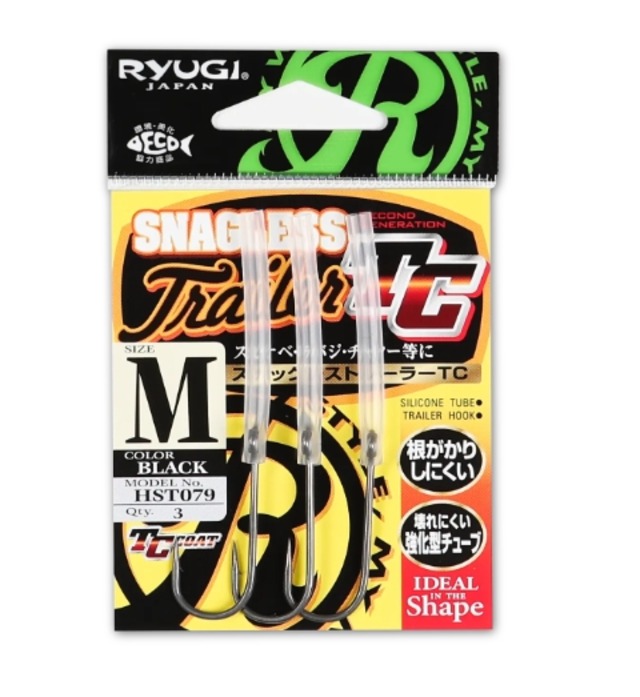 ワイヤーベイトのスナッグレス性能を犠牲にすることなくフッキングパフォーマンスを向上させるトレーラーフック スピナベ・ラバージグ・チャター等に 特徴的なフックの装着方式を採用する事により、ワイヤーベイトのスナッグレス性能を犠牲にすることなく フッキングパフォーマンスを向上させるトレーラーフック、それが“スナッグレストレーラー”。