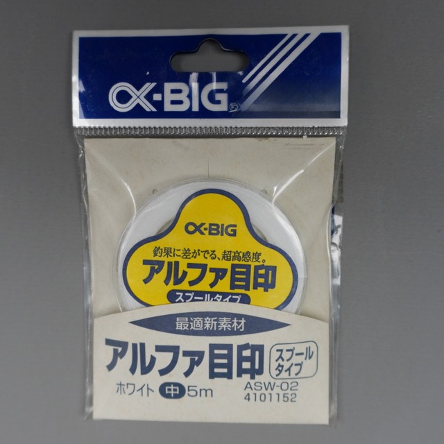 アルファ目印 スプールタイプ 廃番品 店頭在庫限定品 ★店頭在庫限定品のためパッケージ等に色あせ汚れ等がありますのでご了承ください。★ アユ渓流釣りに最適 カラー ホワイト サイズ 中 長さ 5m