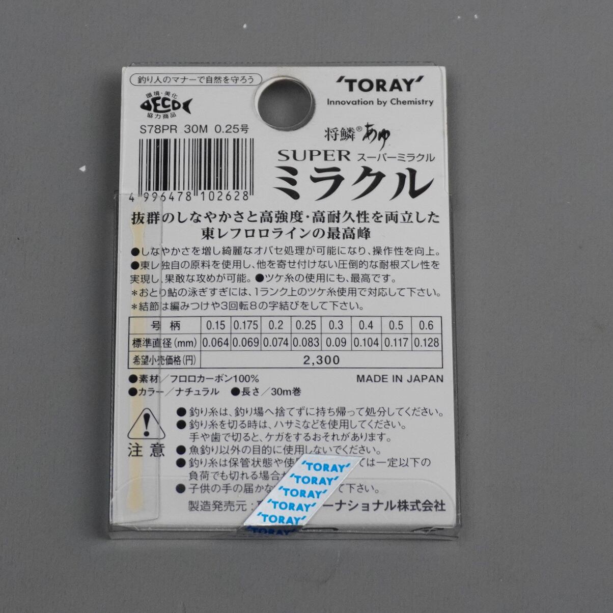 東レ 将鱗 あゆ スーパーミラクル フロロ 0.25号 廃番品