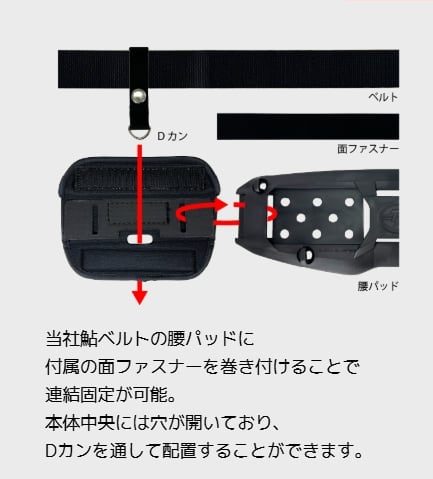 ベルトに巻き付けて固定。