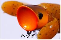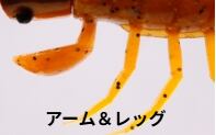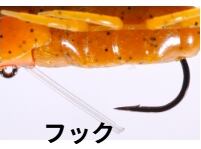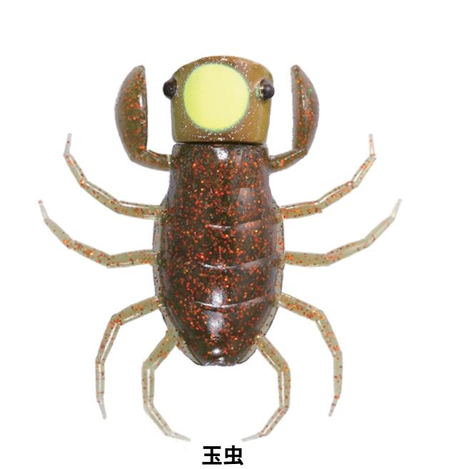 オリカネ虫は、O.S.Pプロスタッフ折金一樹が、虫ルアーが流行る以前から密かに自作を開始。マニアックに追求&進化させ、門外不出にしていた秘密の虫である。磨かれ尽くした性能は、虫ルアーのメッカである亀山湖、高滝湖で開催されるトーナメントにおいて、彼を幾度となくウイナーへと導いた。圧倒的に釣れる秘密は、「ハイプレッシャーに強いスモールシルエットでありながら抜群の集魚力」「虫ルアーにスレたバスであっても騙してしまう極めてエサ的な存在感」「スナッグレス性に優れつつもフッキングが良い」ことにある。カップ型ヘッドが発する甘いポップ音とスプラッシュは、本来、シルエットの小さい虫ルアーではバスに気づいてもらえなかったカバーの奥や、一段深いレンジからもバスを引っ張り出す。逆向きアームは、移動距離を抑えた誘いをイージーにすると同時に、溺れてもがく虫の動きを再現。そして、4対のレッグは水面に浮くことで、僅かなシェイクでも複雑な波紋を発生させる。ブラシガードはヘビーカバー攻略を想定した2本とし、縦列に植えることで、1本ガードにカットして使用する際にもフックの中心線上をしっかりガードする。下向きのラインアイ&フックは、折金があらゆるフックパターンを試したうえで最もフッキングが良いと結論。虫がメインベイトになっているフィールドに限らず、超ハイプレッシャーや見えバスに対しても絶大な威力を発揮します。