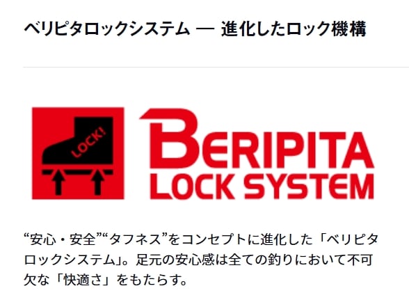 “安心・安全”“タフネス”をコンセプトに進化した「ベリピタロックシステム」。足元の安心感は全ての釣りにおいて不可欠な「快適さ」をもたらす。